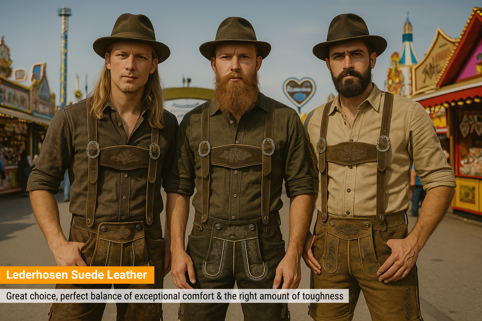 The real traditional Lederhosen is a short or half-length leather pants with suspenders. You may know him from vacation, because these short leather pants with stitching and suspenders are originally from southern Germany and are also widely worn in the Alps. It is in fact a really nice, durable hiking pants for in the mountains. Traditionally, farmers and hunters used to wear sun pants, because leather is hard-wearing and easy to keep clean. Another advantage of these pants is that they fit like a glove. In the end. Because a new pair of pants will still feel stiff, but after a while it will start to mold completely to your body.